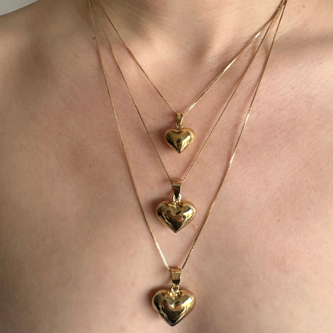 שרשרת בציפוי זהב עם תליון לב בעל גימור מבריק, זמינה במידות שונות.